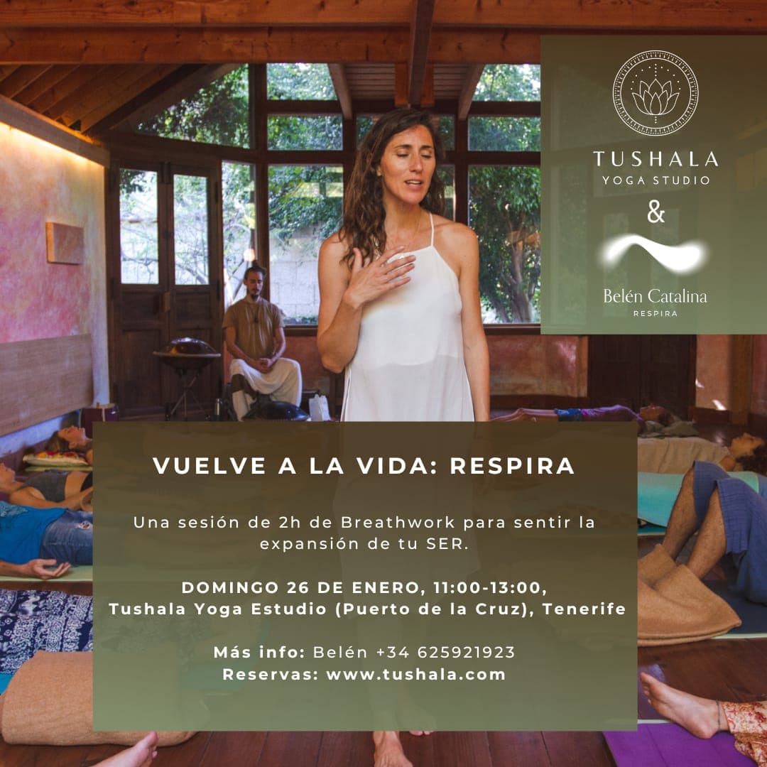 On Sunday, January 26th, Tushala Yoga Studio will host a special Breathwork session guided by Belén Catalina. A wonderful journey through conscious and connected breathing to explore the depths of your BEING.